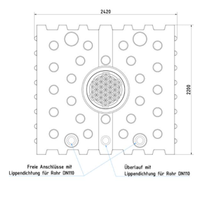 Unser Flachtank 4000l MOMO hat einen Ausgleichsdom (einstellbar von 380 – 580 mm) mit begehbarer Abdeckung und 3 Anschlüssen DN 100