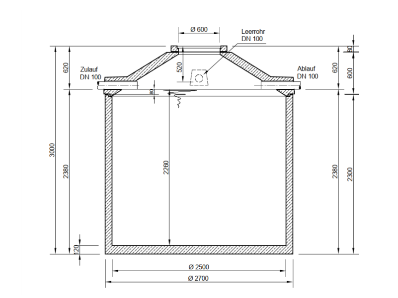 ✅ Perfekte Anschlüsse – Mit Zu- und Ablauf (DN100) sowie einer zusätzlichen Öffnung für die Versorgungsleitung, einfach zu integrieren.