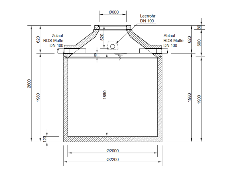 ✅ Perfekte Anschlüsse – Mit Zu- und Ablauf (DN100) sowie einer zusätzlichen Öffnung für die Versorgungsleitung, einfach zu integrieren.