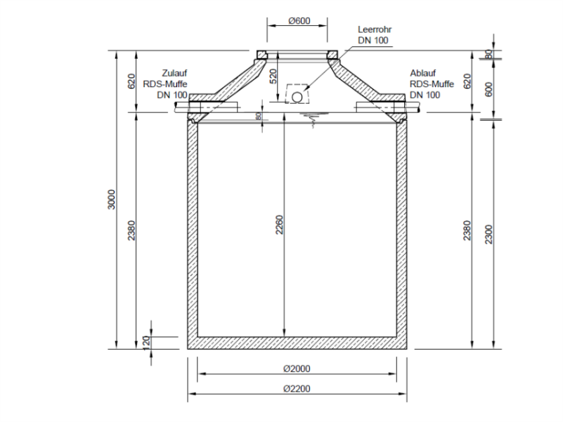 ✅ Perfekte Anschlüsse – Mit Zu- und Ablauf (DN100) sowie einer zusätzlichen Öffnung für die Versorgungsleitung, einfach zu integrieren.