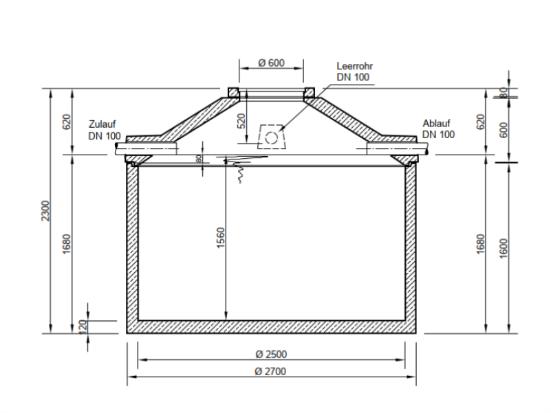 ✅ Perfekte Anschlüsse – Mit Zu- und Ablauf (DN100) sowie einer zusätzlichen Öffnung für die Versorgungsleitung, einfach zu integrieren.
